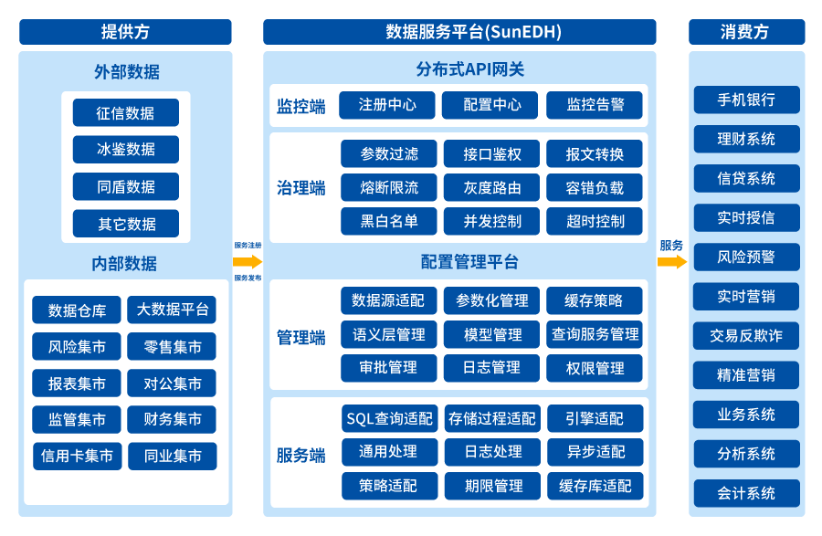 大数据概念千篇一律,优秀的产品万里挑一,龙8-long8科技在金融大数据领域异军突起,打造了多个大数据领域爆款产品,已为平安银行、恒丰银行、南京银行、郑州银行等多个银行实施了大数据解决方案。今天咱们重点说的数据统一服务平台也同样能力出众。